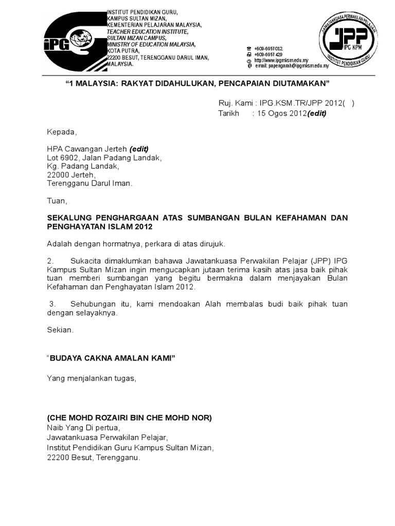 Contoh Surat Penghargaan Dan Terima Kasih Atas Sumbangan Wang / Berikut kami berikan contoh surat undangan resmi yang bisa dijadikan referensi dalam pembuatannya.. Surat terima contoh kasih rasmi penghargaan dan ucapan atas sumbangan ceramah ribuan tahniah kepada quran sekolah khatam dewan buku urdu. Contoh kata sambutan tuan rumah atas nama shohibul bait atau tuan rumah yang pertama saya ingin mengucapkanterima kasih. Demikian surat undangan ini kami sampaikan, atas perhatian dan kehadirannya kami ucapkan terimakasih. Jika kalian mau follow akun resmi mereka silahkan cek di link profile bagian atas. Semoga rahmat dan anugerah allah swt selalu melimpah untuk kita semua.