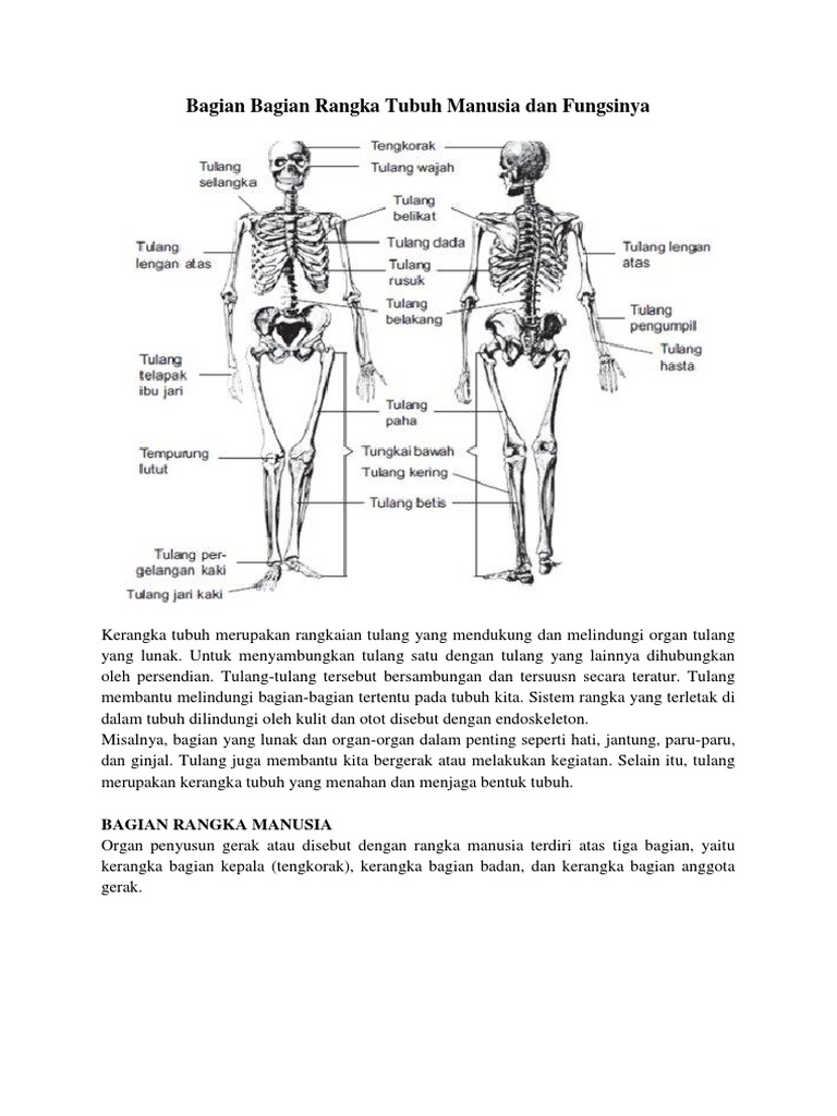 Pembagian Rangka Tubuh Manusia from imgv2-1-f.scribdassets.com Rangka kepala dikenal dengan nama tengkorak dan rangka tulang kepala ini berbentuk bulat, disusun oleh anggota gerak atas disebut juga dengan lengan (tangan). Rangka tubuh manusia adalah rangkaian tulang manusia yang mendukung serta melindungi organ tulang didalam tubuh yang lunak. Sementara penyambung tulang satu dan tulang lainnya ialah persendian. Atlas) ^ tulang kelangkang manusia pada saat lahir terdiri dari 5 ruas. Pada orang dewasa atau lanjut usia, gangguan tulang yang dapat dialami adalah. Dapatkan penjelasan bukan hanya jawaban. Ajukan pertanyaan tentang tugas sekolahmu. Tulang tulang yang bersambungan tersebut juga tersusun dengan teratur.