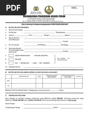 Borang maklumat pengajian pelajar di bawah selian pejabat atase pendidikan perak sesi pengajian: Permohonan dermasiswa yayasan perak bagi dalam dan luar negara pendidikan4all. Bantuan pendidikan tinggi yayasan perak hep uitm cawangan johor kampus pasir gudang facebook. 13 march 2019 reported by : Senarai bantuan pendidikan tinggi negeri perak tahun 2019 date :